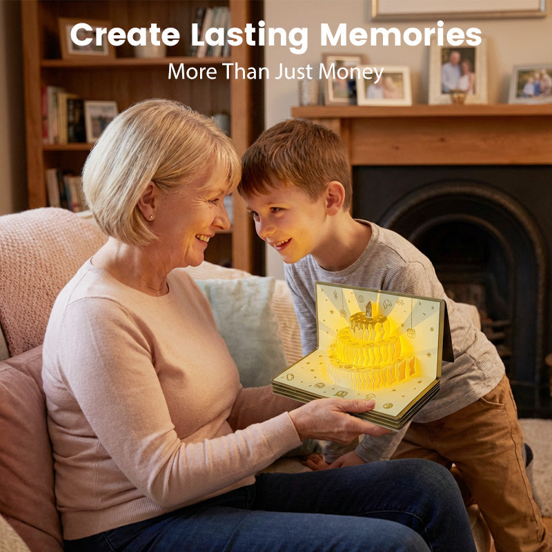 INTEGRATED MUSIC & LIGHTS - The card comes alive with a cheerful "Happy Birthday" melody and a warm, glowing light effect upon opening. This multi-sensory experience elevates the traditional greeting card, creating a festive and joyous atmosphere.