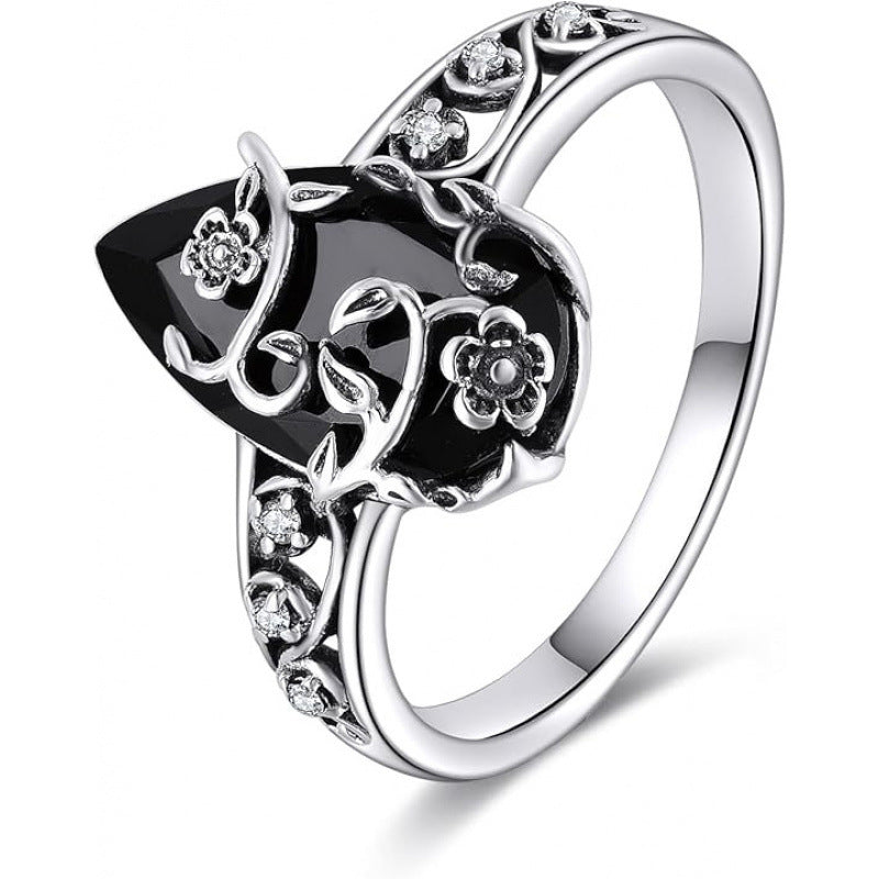 STRIKING BLACK GEMSTONE - The central teardrop-shaped stone creates a bold and mysterious contrast. It serves as a sophisticated focal point that captures attention and complements both casual and formal wear beautifully.