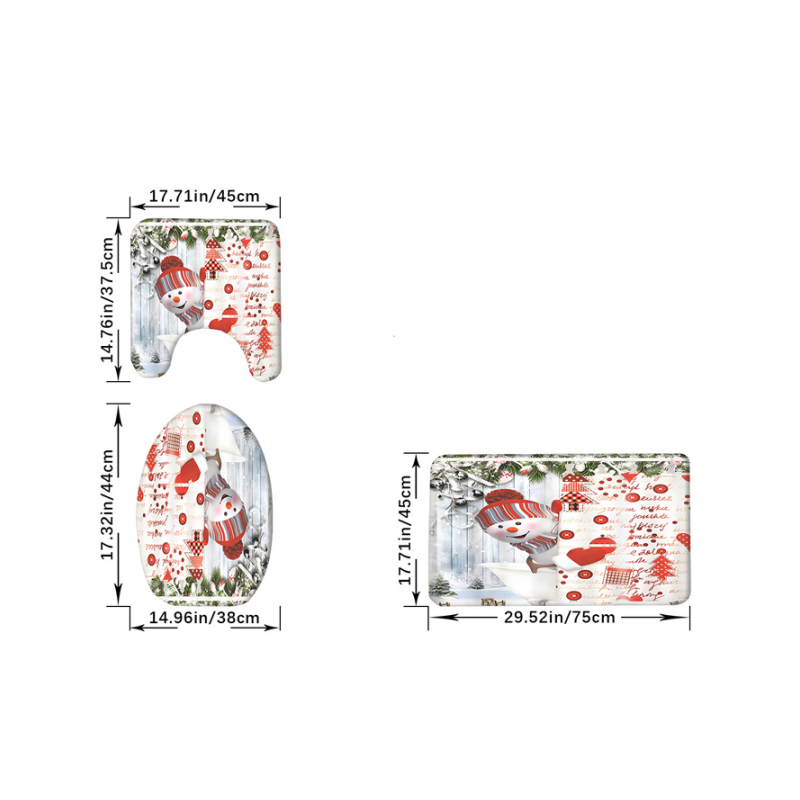 Package Include: 1 * Christmas Snowman Shower Curtain Set with 12 Hooks/3-Piece Set/4-Piece Set